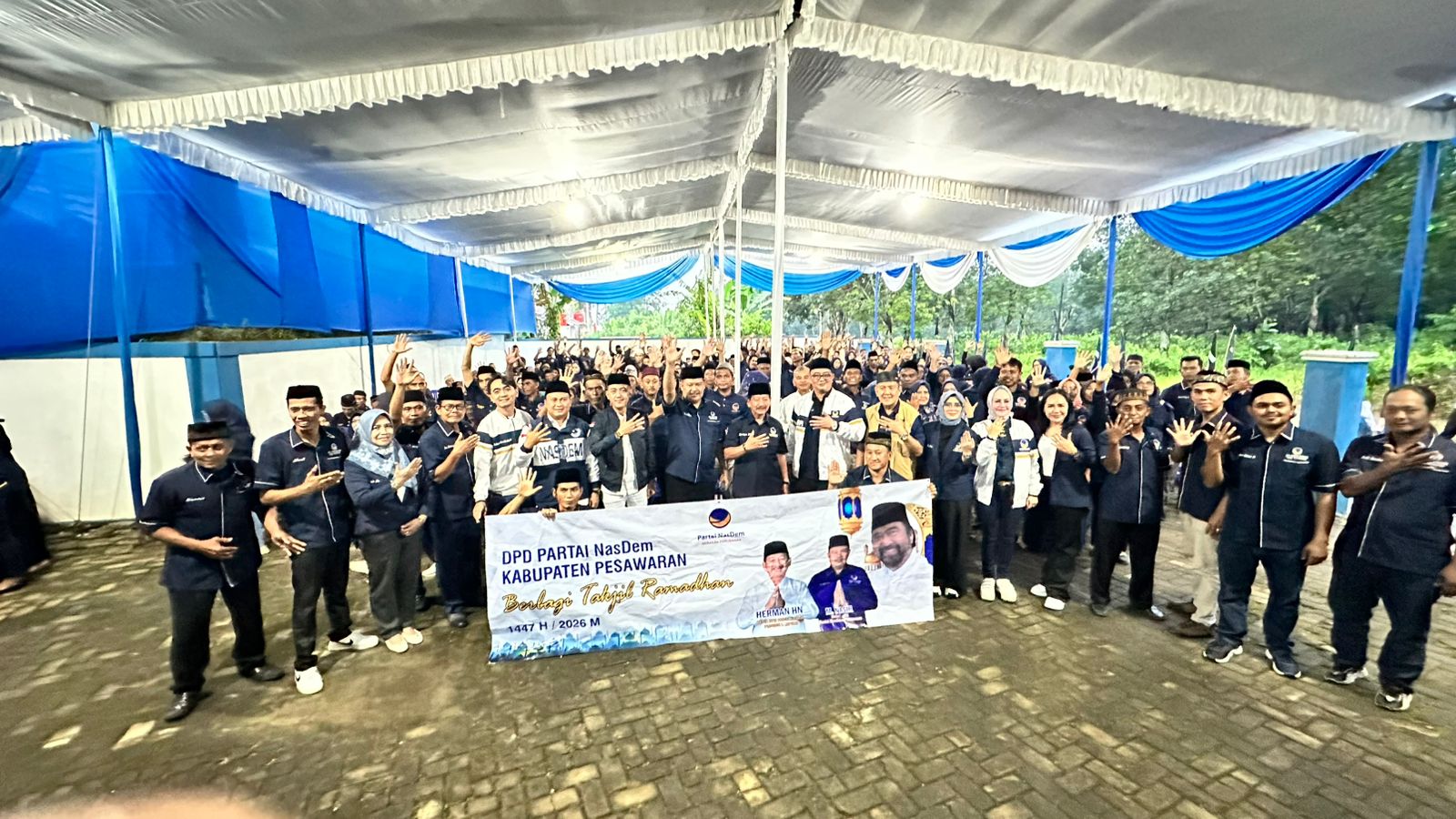 PESAWARAN – DPW dan DPD Partai NasDem Kabupaten Pesawaran menebar kebaikan di bulan suci Ramadan dengan membagikan 1.000 paket takjil berupa kurma kepada para pengendara yang melintas di Tugu Pengantin, Sabtu, 28 Februari 2026.