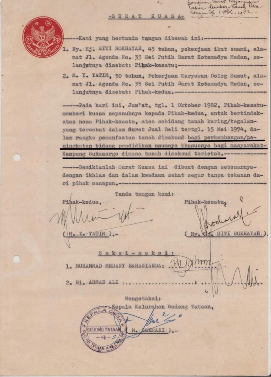 “ Tapi tidak disetujui permohonan tersebut. Saya selaku pihak yang menghibahkan tanah, menolak secara tegas kalau tanah yang awalnya peruntukannya bagi pendidikan dialihkan untuk pembangunan dapur MBG. Karena merubah perjanjian atau kesepakatan hibah,”jelasnya