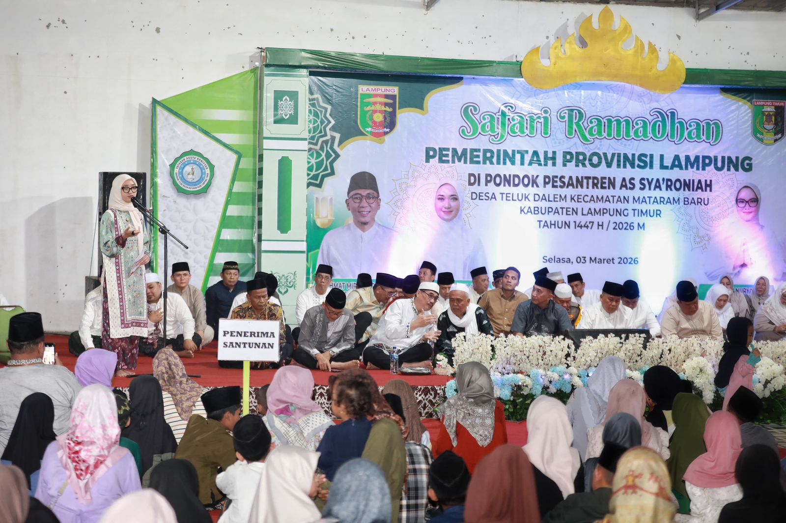 LAMPUNG – Pemerintah Provinsi Lampung menggelar Safari Ramadhan 1447 Hijriah/2026 Masehi bersama santri dan masyarakat, di Pondok Pesantren As Sya’roniah, Desa Teluk Dalem, Kecamatan Mataram Baru, Kabupaten Lampung Timur, Selasa (3/3/2026).